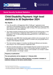 This publication provides information on applications and payments for Child Disability Payment from 26 July 2021 to 30 September 2024.