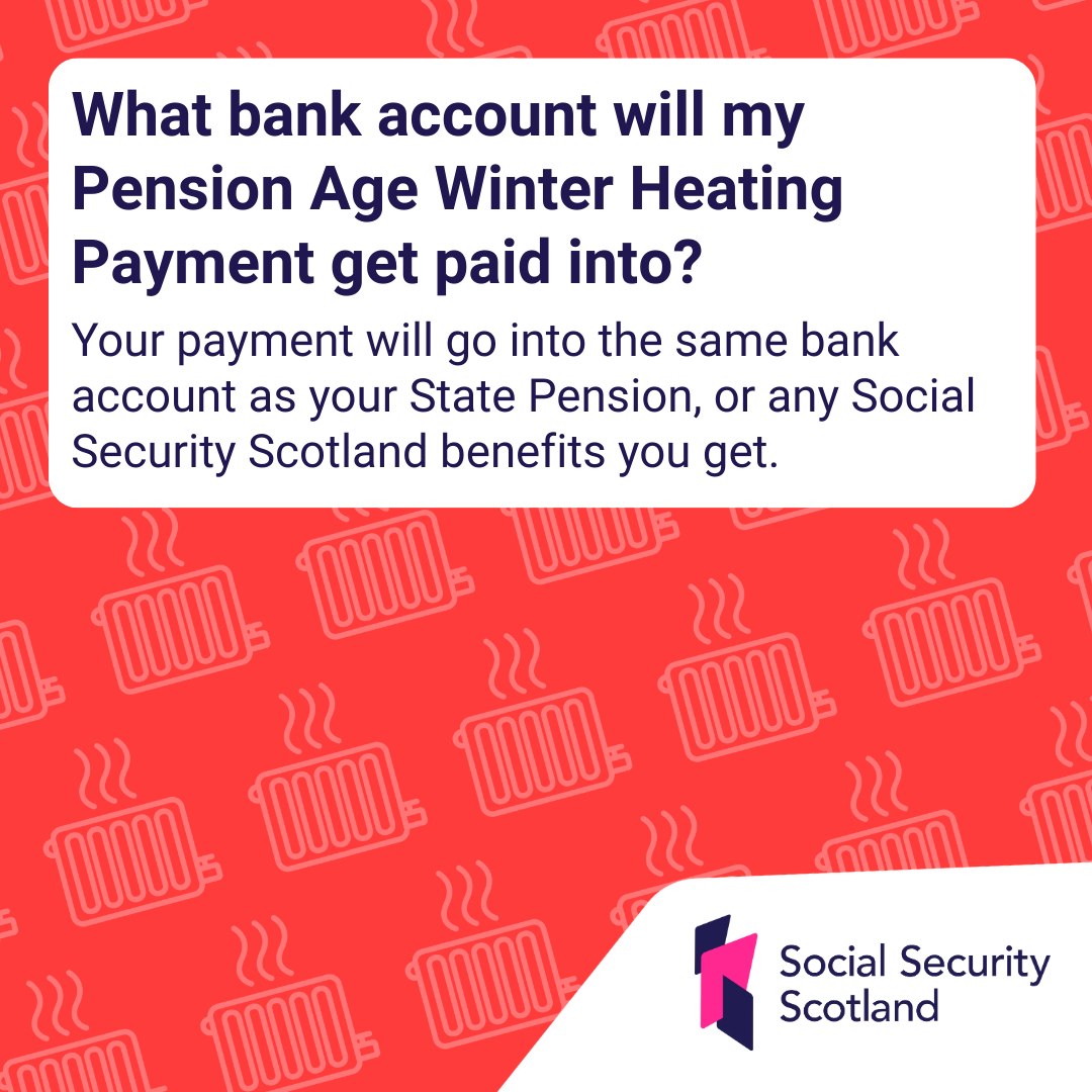 Your payment will go into the same bank account as your State Pension, or any Social Security Scotland benefits you get.