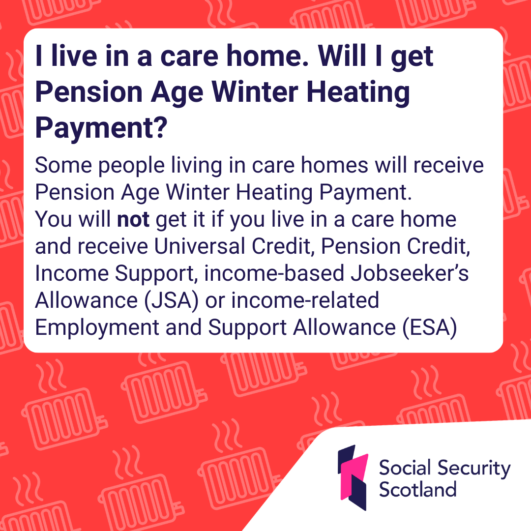 Some people living in care homes will receive Pension Age Winter Heating Payment.