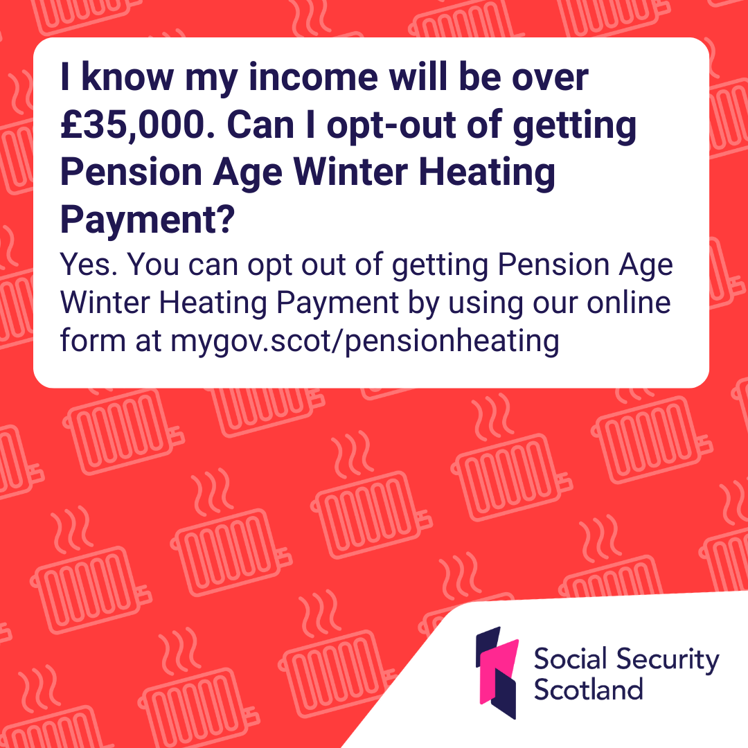 Yes. You can opt out of getting Pension Age Winter Heating Payment by using our online form at mygov.scot/pensionheating.